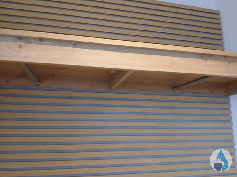 - Wandverkleidung aus Holzlamellen für ruhige Raumwirkung