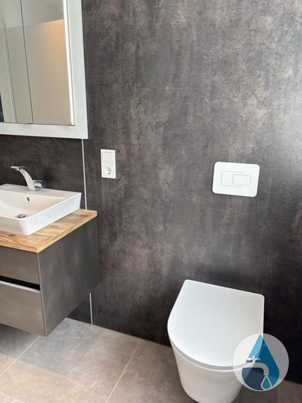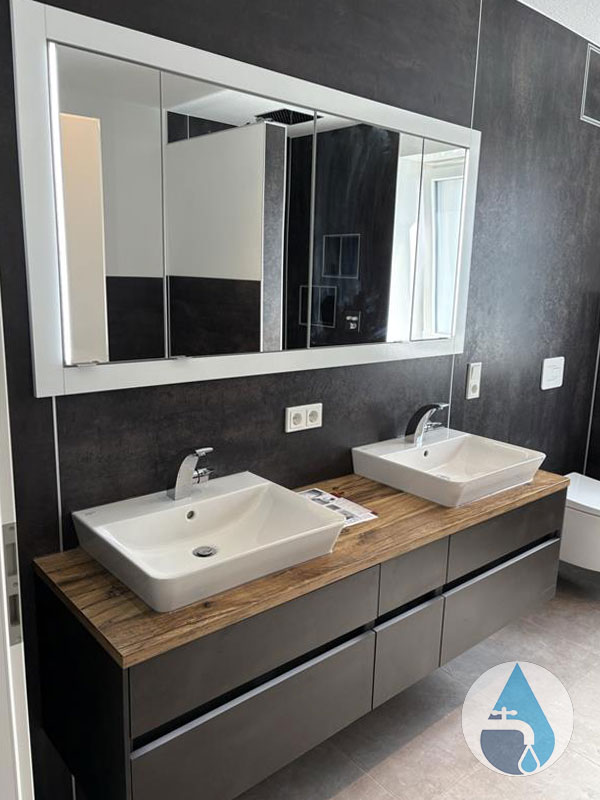 Wir zeigen Ihnen gerne abgeschlossene Badezimmer-Projekte mit Aluverbund-Wandpaneelen – inklusive passgenauer Möbel aus unserer Tischlerei, z. B.: